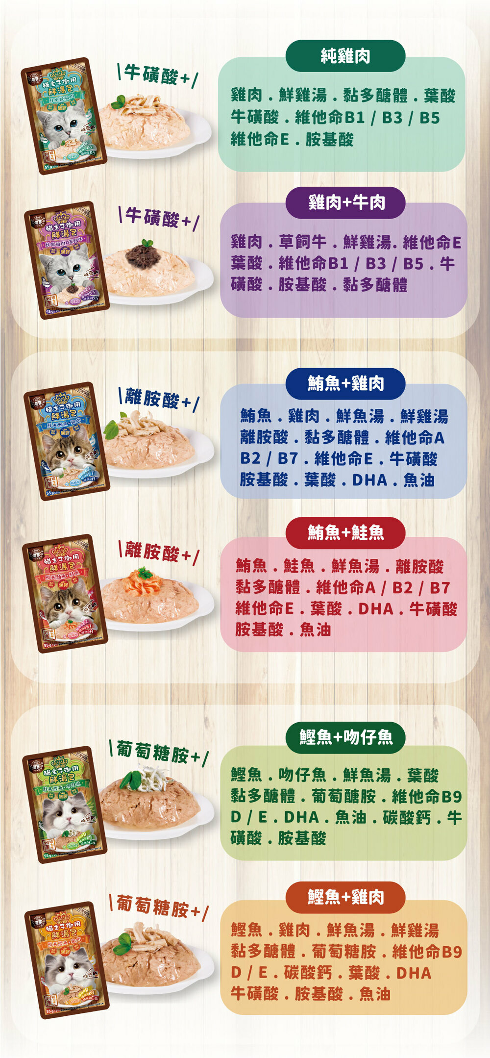 ▸ 添加牛磺酸/離胺酸/葡萄糖胺機能保健成分