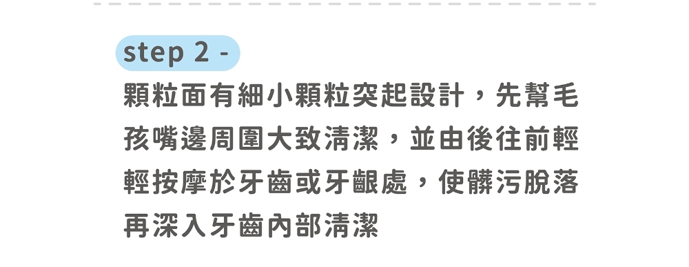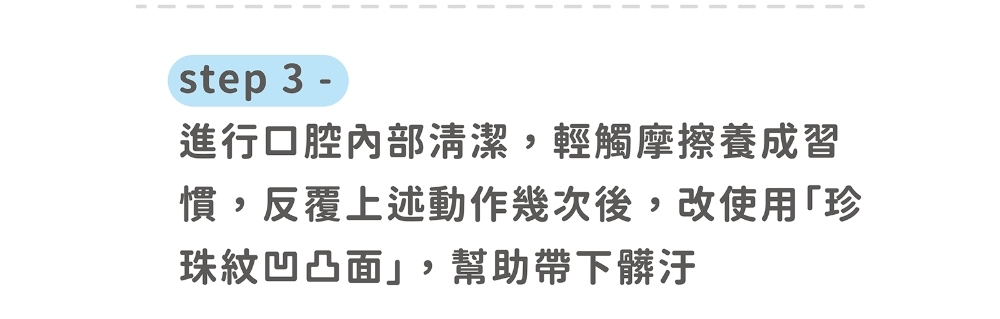 「顆粒面」- 細小顆粒突起設計,來回摩擦去除髒污