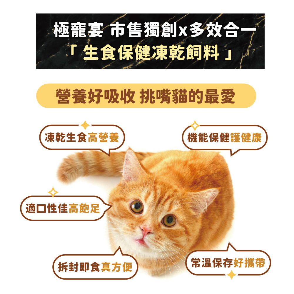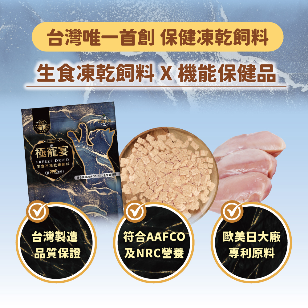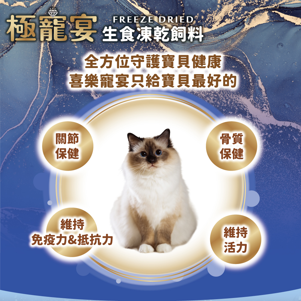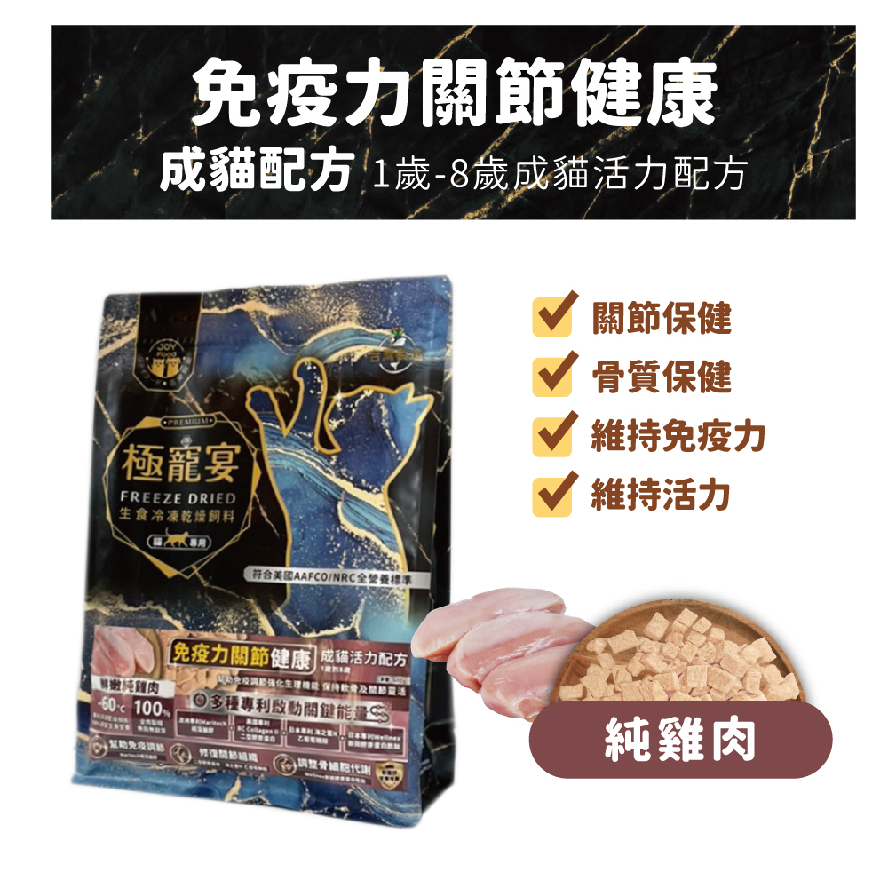 極寵宴 | 生食冷凍乾燥飼料 | 免疫力關節健康 (1歲到8歲成貓活力配方-鮮嫩純雞肉)