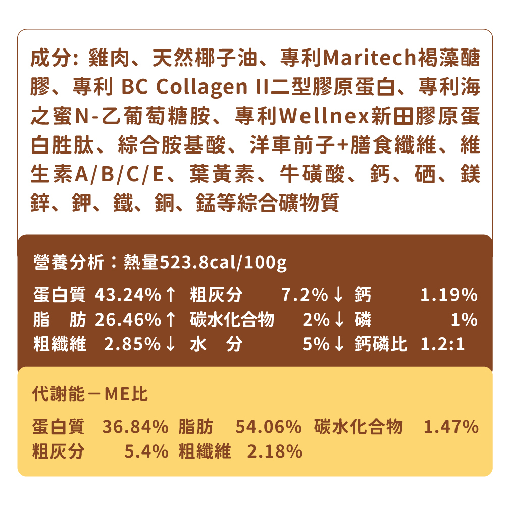 ⊙鮮嫩雞肉製成,高蛋白質、低熱量、低脂肪,低敏食材,富含維生素