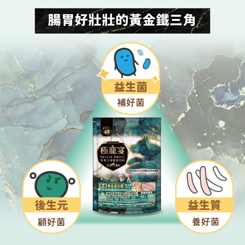 極寵宴 | 生食冷凍乾燥飼料 | 皮膚黃金益生菌 (1歲-8歲成犬活力配方-鮮嫩純雞肉)