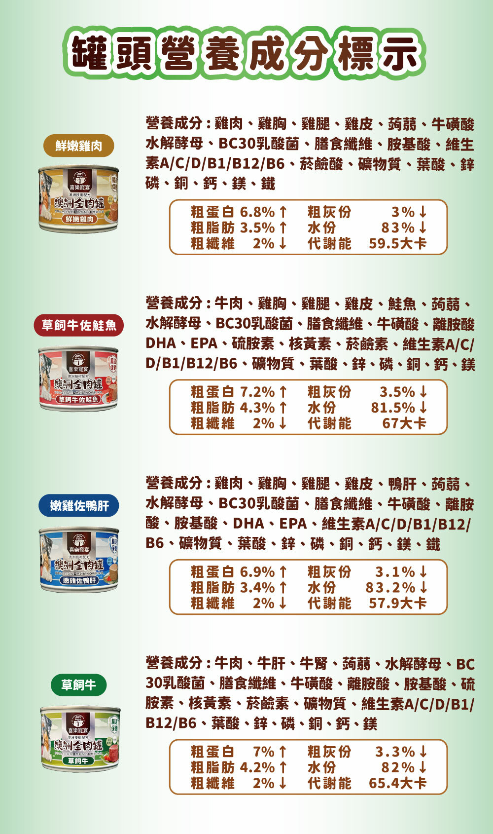 採用高達98%的全肉製程,提供豐富的蛋白質,高適口性。更特別添加BC30乳酸菌、水解酵母及膳食纖維,有助於維持腸道健康,是兼具美味與保健的優質主食罐。