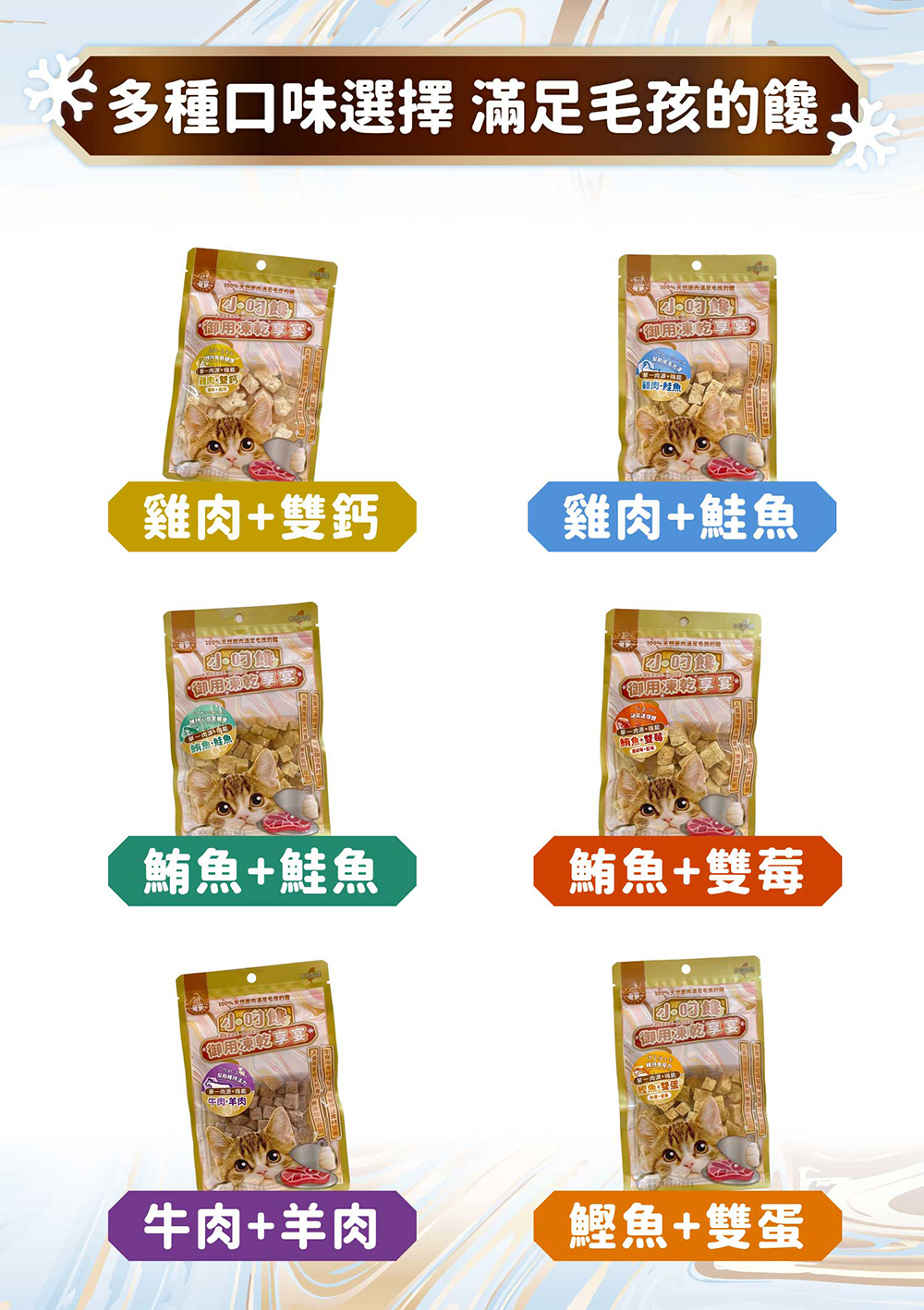 小叼饞貓凍乾零食享宴系列-牛肉羊肉 / 鮪魚鮭魚 / 鮪魚雙莓 / 雞肉鮭魚 / 雞肉雙鈣 / 鰹魚雙蛋 (20g袋裝)