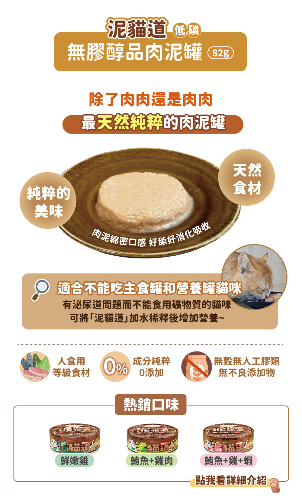 ☛泥貓道-無膠醇品肉泥罐 82g x1罐