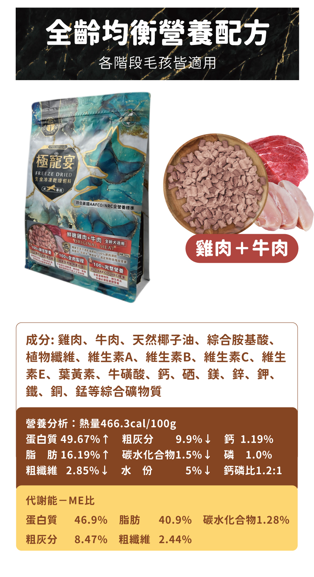 極寵宴 | 生食冷凍乾燥飼料 | 全齡犬配方-鮮嫩雞肉+牛肉
