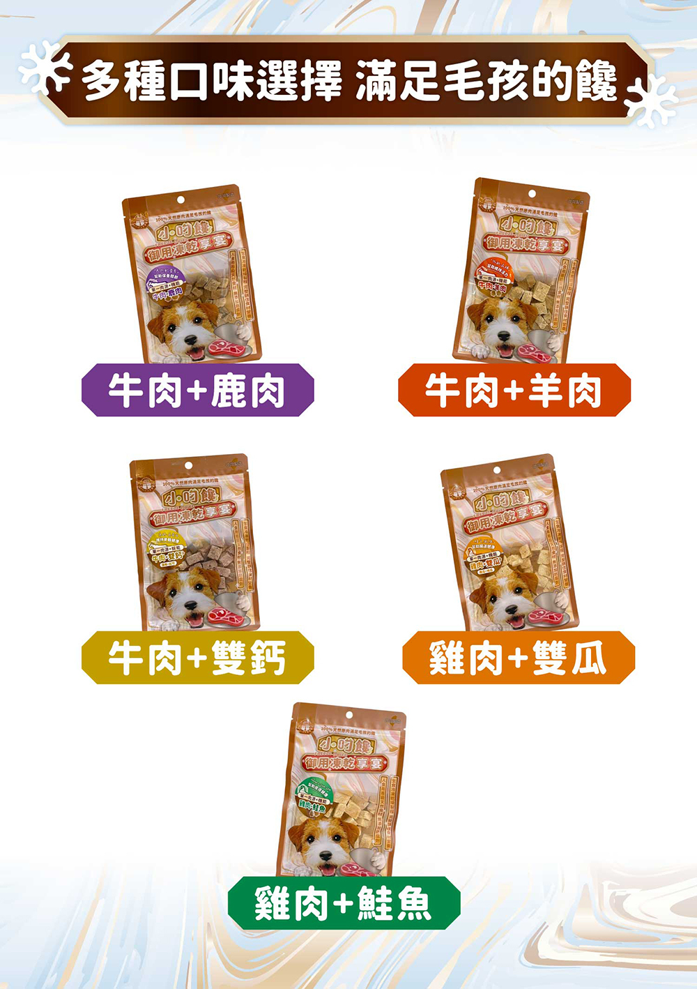 小叼饞狗凍乾零食享宴系列-牛肉羊肉 / 牛肉鹿肉 / 牛肉雙鈣 / 雞肉鮭魚 / 雞肉雙瓜 (20g袋裝)