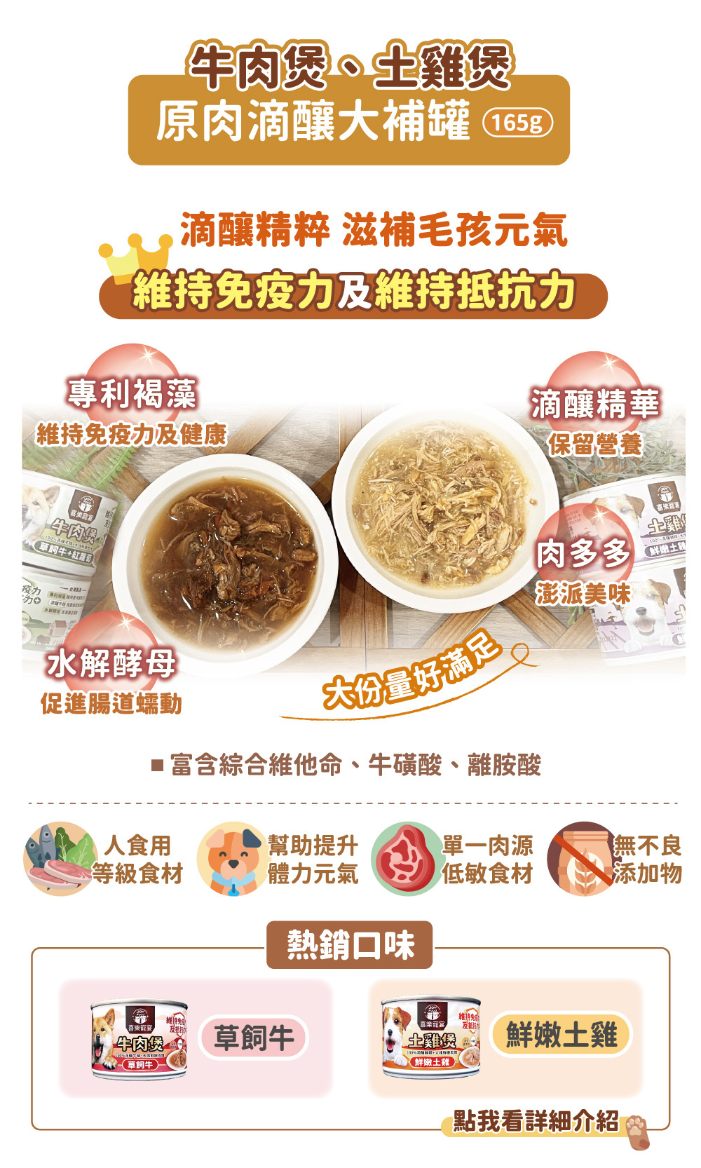 ☛喜樂寵宴牛肉煲、土雞煲罐165g x1