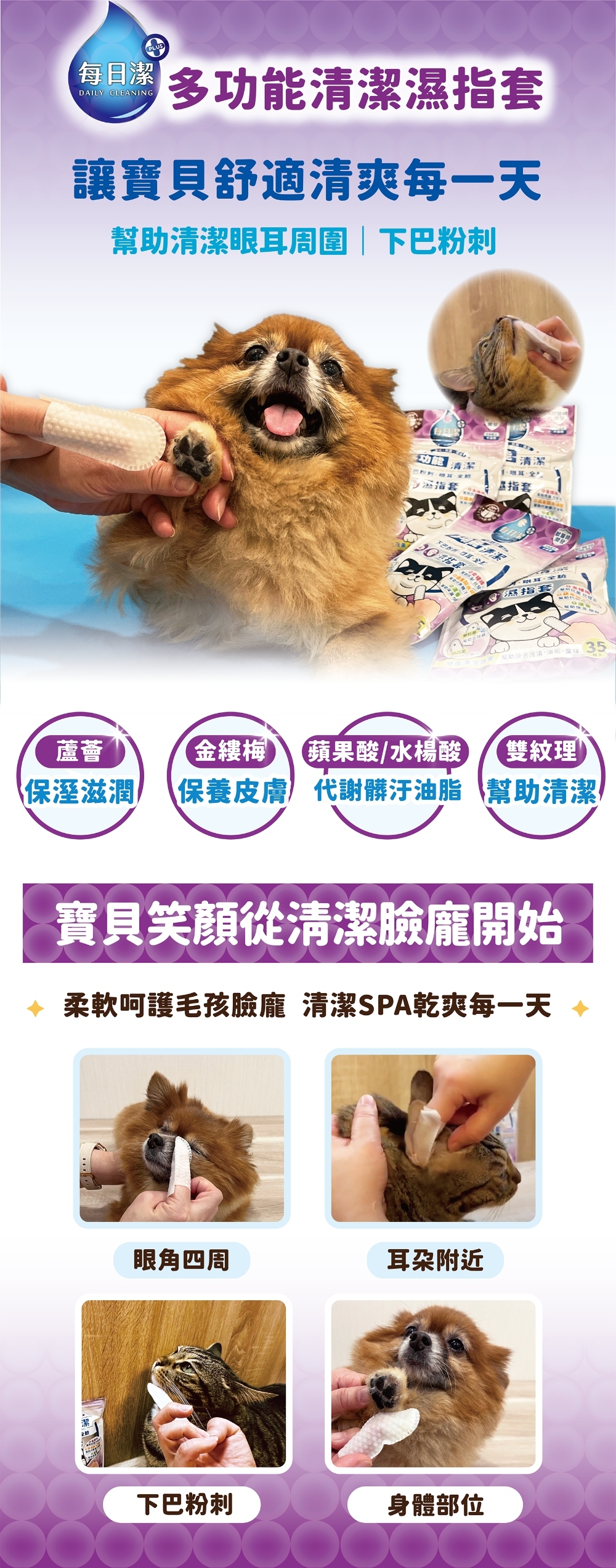 ✦ 清潔下巴粉刺、眼睛周圍、耳朵周圍內部、全臉