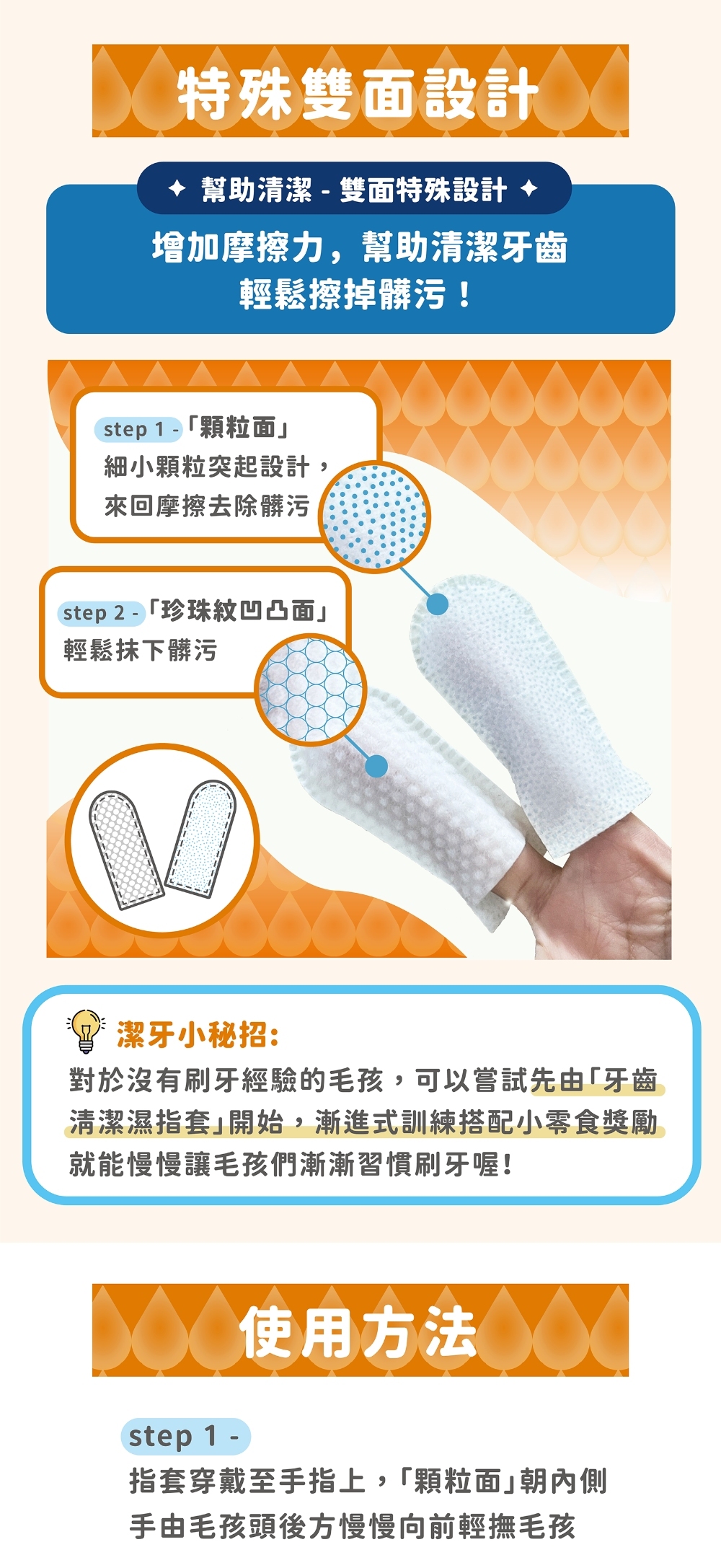 「顆粒面」- 細小顆粒突起設計,來回摩擦去除髒污
